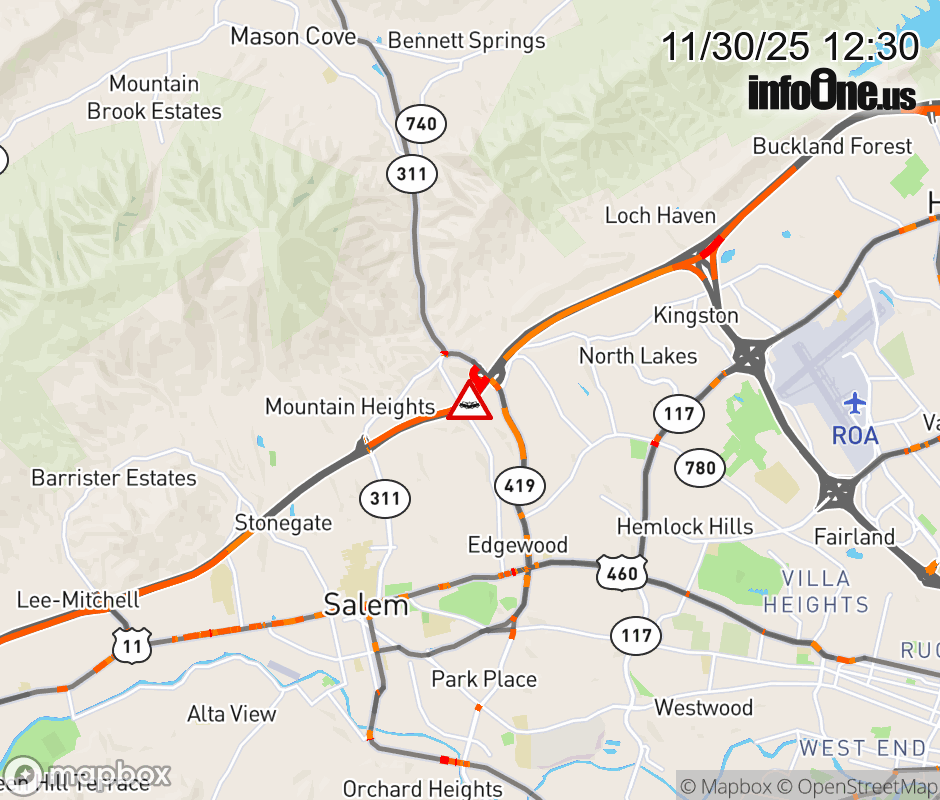 On I-81 at mile marker 141.3 in the County of Roanoke, motorists can expect delays due to a vehicle crash. The south right shoulder is closed. Updated: Sun 11/30/25 12:30 PM EST ![]() Updated: Sun 11/30/25 12:30 PM EST |