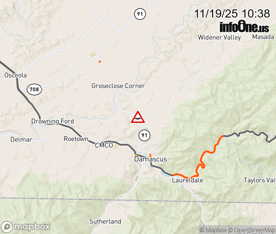 On VA-91 North in the County of Washington, in the vicinity of Bennington Way; Rt. 773E/W (Washington County), motorists can expect delays due to a vehicle crash. Lane closures exist. ![]() |