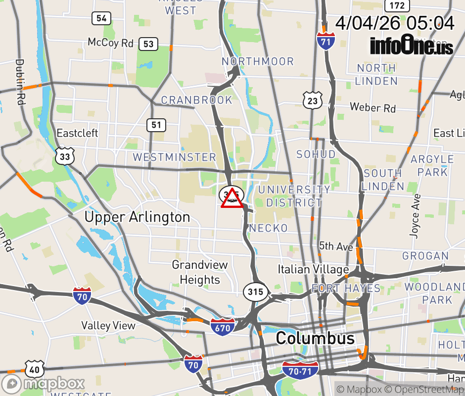 Ramp to Kinnear Rd/Olentangy Rd from SR-315 South is blocked due to crash. ![]() |
