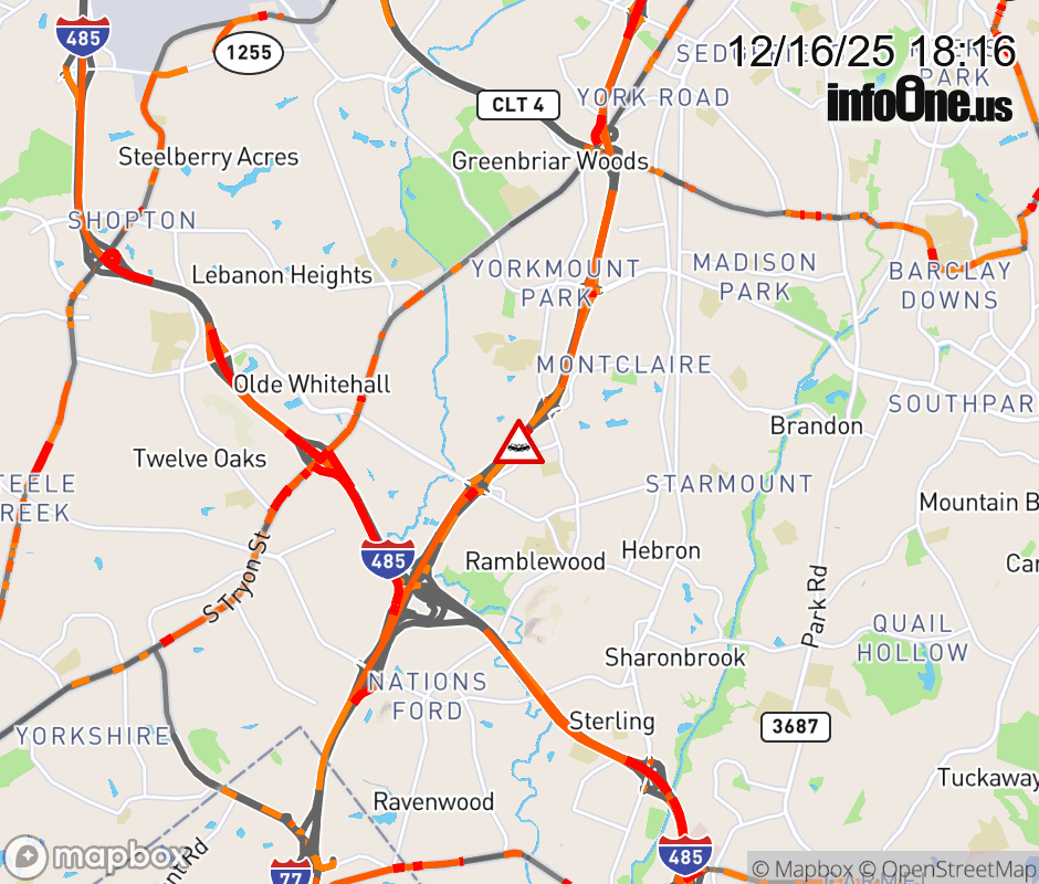 The right shoulder is closed before Exit 4 (Nations Ford Rd) Updated: Tue 12/16/25 6:16 PM EST ![]() Updated: Tue 12/16/25 6:16 PM EST |