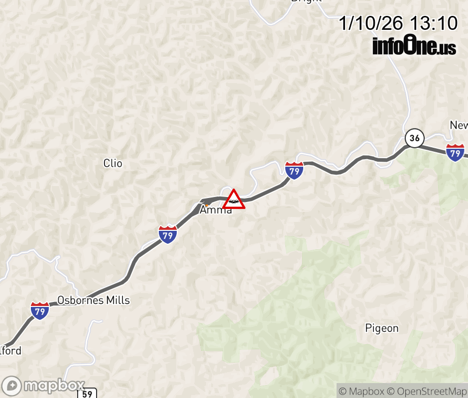 Vehicle Crash on I-79S at Mile Marker 26.0. Updated: Sat 1/10/26 1:10 PM EST ![]() |
