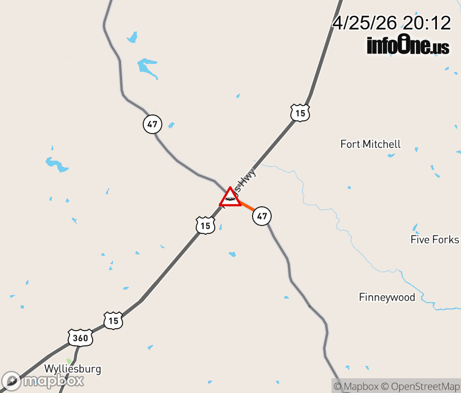 On US-360 in the County of Charlotte, in the vicinity of Craftons Gate Hwy; Craighead Ln; Kings Hwy; Seven Winds Ln; Shiloh Church Rd; VA-47N/S, motorists can expect delays due to a vehicle crash. The east left shoulder and left lane are closed. ![]() |
