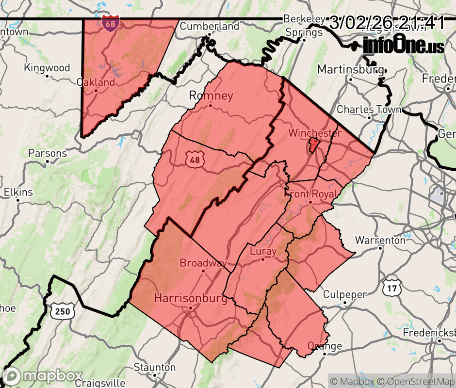 Canceled 3/3/26 2:20 AM Winter Weather Advisory issued March 2 at 9:40PM EST until March 3 at 10:00AM EST by NWS Baltimore MD/Washington DC * WHAT... Mixed precipitation. Additional snow and sleet accumulations up to one inch and ice accumulations up to two tenths of an inch. * WHERE... Portions of western Maryland, northwest Virginia, and eastern West Virginia. * WHEN... Until 10 AM EST Tuesday. * IMPACTS... Plan on slippery road conditions. The hazardous conditions could impact the Tuesday morning commute. ![]() |