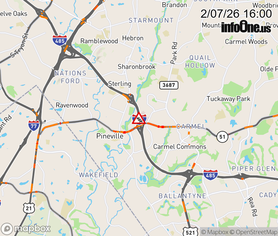 There is congestion near Exit 64B (NC-51). Updated: Sat 2/7/26 4:00 PM EST ![]() Updated: Sat 2/7/26 4:00 PM EST |