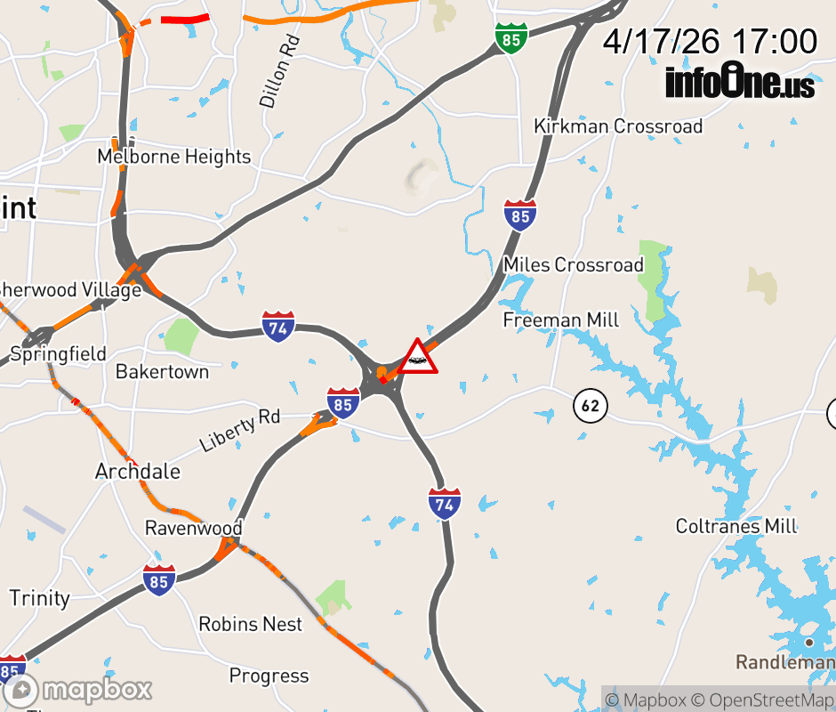 The left lane is closed past Exit 113 (I-74). Updated: Fri 4/17/26 5:00 PM EDT ![]() Updated: Fri 4/17/26 5:00 PM EDT |