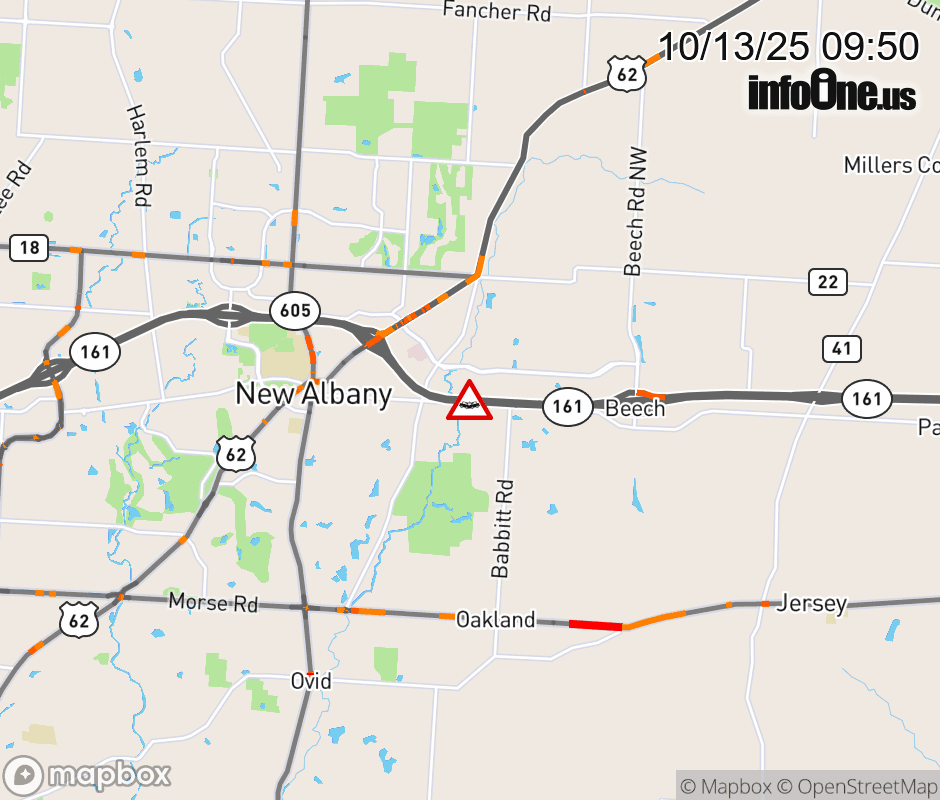 Expect lane closures on SR-161 Westbound past, Beech Rd due to a crash. Updated: Mon 10/13/25 9:50 AM EDT ![]() |