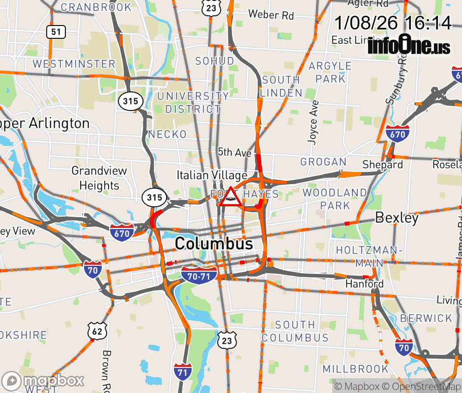 The center lane is blocked on I-670 East at SR-3/Cleveland Ave, due to a crash. ![]() |