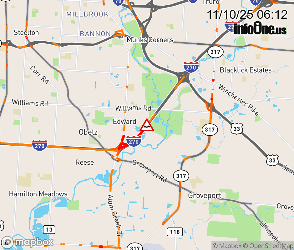 Expect lane closures on I-270 South beyond US-33 East, due to a crash. ![]() |