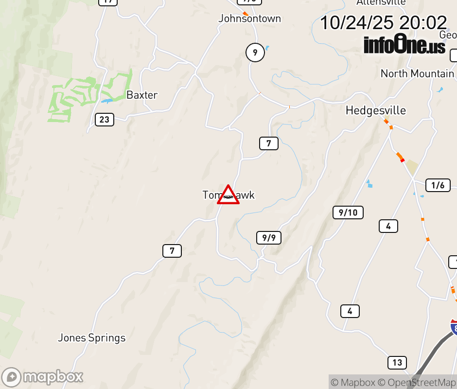 Vehicle Crash on CR-7 (PRESBYTERIAN CHURCH RD / BACK CREEK VALLEY RD). The southbound road is closed. Updated: Fri 10/24/25 8:02 PM EDT ![]() Updated: Fri 10/24/25 8:02 PM EDT |