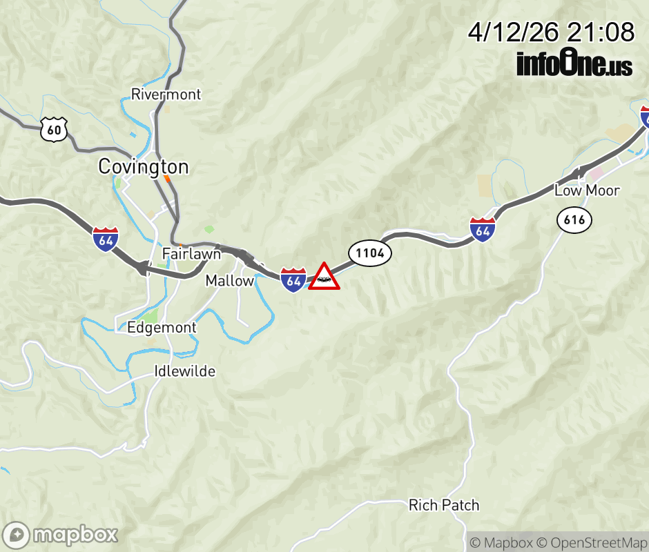 On I-64 at mile marker 17.7 in the County of Alleghany, motorists can expect delays due to a vehicle crash. The east right shoulder is closed. Updated: Sun 4/12/26 9:08 PM EDT ![]() |
