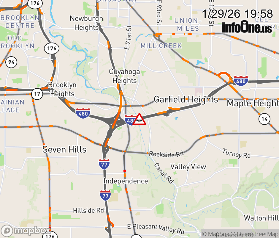 The left lane is blocked on I-480 East beyond I-77, due to a crash.