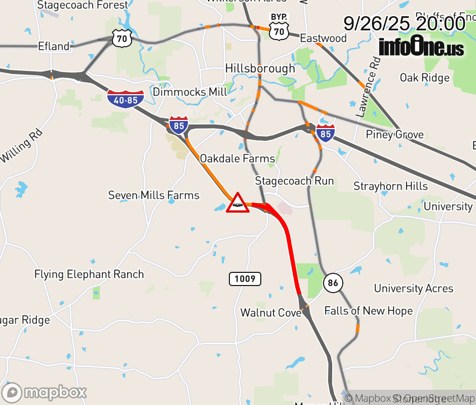 The Left Lane is Closed Past Exit 261 (Old NC 86). ![]() |
