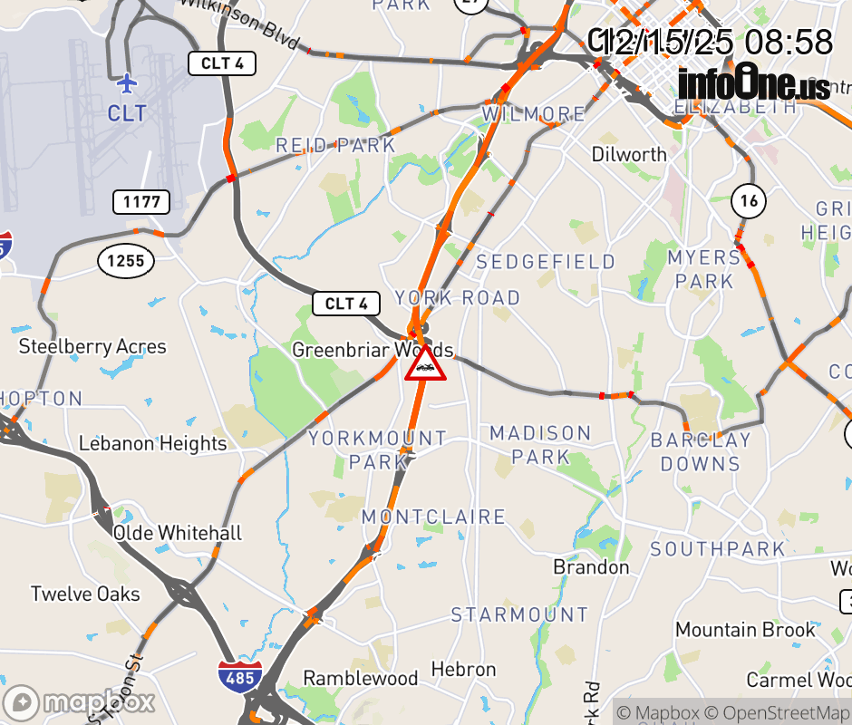 The center lane is closed near Exit 6 ( W. Woodlawn Rd.). ![]() |