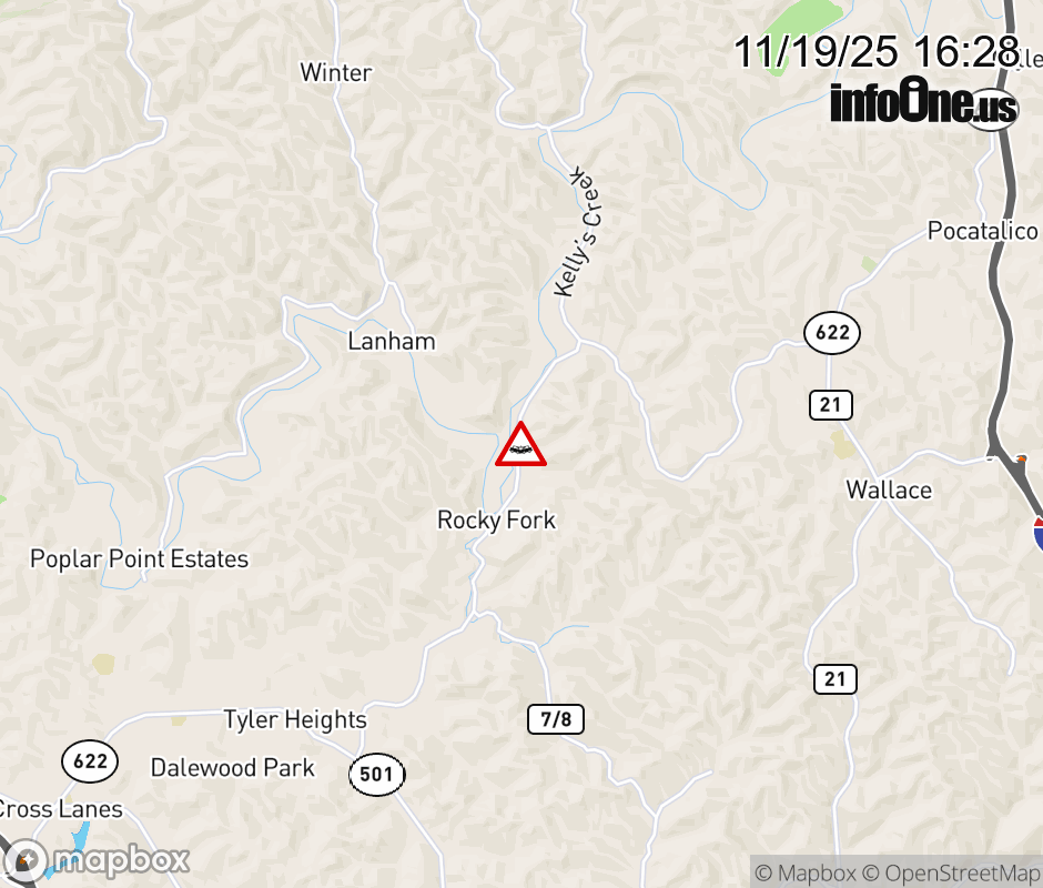 Vehicle Crash on WV-622 (7100 BLK of Rocky Fork Rd) in Tyler Mountain. The northbound road is closed. The southbound road is closed. Updated: Wed 11/19/25 4:28 PM EST ![]() Updated: Wed 11/19/25 4:28 PM EST |