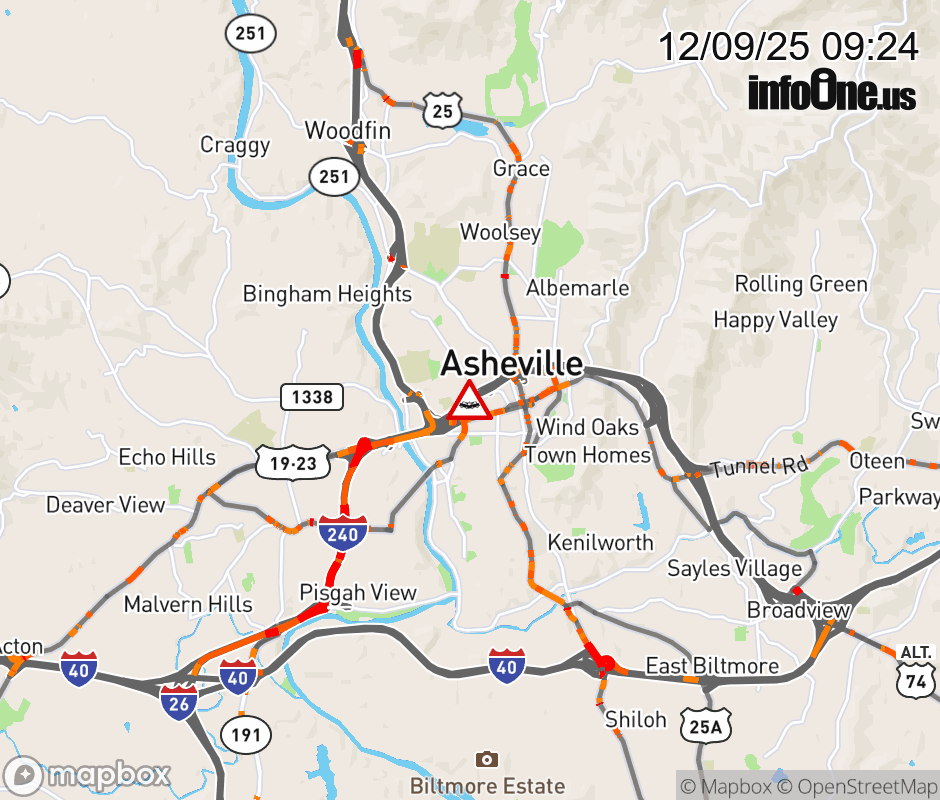 The right shoulder is closed near Exit 4C, Montford Avenue. Updated: Tue 12/9/25 9:24 AM EST ![]() Updated: Tue 12/9/25 9:24 AM EST |