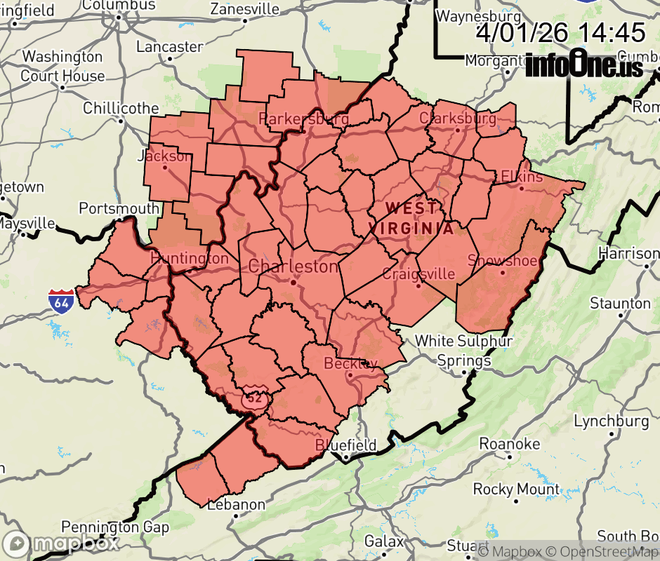 Canceled 4/1/26 8:00 PM Severe Thunderstorm Watch issued April 1 at 2:44PM EDT until April 1 at 8:00PM EDT by NWS Charleston WV THE NATIONAL WEATHER SERVICE HAS ISSUED SEVERE THUNDERSTORM WATCH 85 IN EFFECT UNTIL 8 PM EDT THIS EVENING FOR THE FOLLOWING AREAS IN KENTUCKY THIS WATCH INCLUDES 4 COUNTIES IN NORTHEAST KENTUCKY BOYD CARTER GREENUP LAWRENCE IN OHIO THIS WATCH INCLUDES 8 COUNTIES IN SOUTHEAST OHIO ATHENS GALLIA JACKSON LAWRENCE MEIGS MORGAN VINTON WASHINGTON IN VIRGINIA THIS WATCH INCLUDES 2 COUNTIES IN SOUTHWEST VIRGINIA BUCHANAN DICKENSON IN WEST VIRGINIA THIS WATCH INCLUDES 34 COUNTIES IN CENTRAL WEST VIRGINIA BRAXTON CALHOUN CLAY GILMER JACKSON NICHOLAS ROANE TAYLOR WEBSTER IN NORTHERN WEST VIRGINIA BARBOUR DODDRIDGE HARRISON LEWIS PLEASANTS POCAHONTAS RANDOLPH RITCHIE TYLER UPSHUR WIRT WOOD IN SOUTHERN WEST VIRGINIA BOONE FAYETTE KANAWHA LINCOLN LOGAN MCDOWELL MINGO PUTNAM RALEIGH WYOMING IN WESTERN WEST VIRGINIA CABELL MASON WAYNE THIS INCLUDES THE CITIES OF ALUM CREEK, ASHLAND, ATHENS, BECKLEY, BELINGTON, BELMONT, BELPRE, BREAKS INTERSTATE PARK, BRIDGEPORT, BUCKHANNON, BURNSVILLE, CANNONSBURG, CARTER CAVES STATE PARK, CEREDO, CHAPMANVILLE, CHARLESTON, CLARKSBURG, CLAY, CLINTWOOD, COWEN, CRAIGSVILLE, DAVENPORT, ELIZABETH, ELKINS, FAYETTEVILLE, FLATWOODS, GALLIPOLIS, GARY, GASSAWAY, GLENVILLE, GRAFTON, GRANTSVILLE, GRAYSON, GRAYSON LAKE STATE PARK, GRUNDY, HAMDEN, HAMLIN, HARRISVILLE, HARTS, HOLLY RIVER STATE PARK, HUNTINGTON, HURLEY, HURRICANE, IRONTON, JACKSON, KENOVA, LAKE VESUVIUS, LOGAN, LOUISA, MADISON, MAN, MARIETTA, MARLINTON, MCARTHUR, MCCONNELSVILLE, MIDDLEBOURNE, MULLENS, NEW HAVEN, OAK HILL, OAK HILL, OCEANA, OLIVE HILL, PADEN CITY, PARKERSBURG, PENNSBORO, PHILIPPI, PINEVILLE, POINT PLEASANT, POMEROY, RACELAND, RAVENSWOOD, RICHWOOD, RIPLEY, RUSSELL, SAINT ALBANS, SISTERSVILLE, SOUTH CHARLESTON, SOUTH POINT, SPENCER, ST. MARYS, STOCKPORT, SUMMERSVILLE, SUTTON, TEAYS VALLEY, VANSANT, VIENNA, WAR, WAYNE, WEBSTER SPRINGS, WELCH, WELLSTON, WEST UNION, WESTON, WILLIAMSON, AND YATESVILLE LAKE STATE PARK. ![]() |