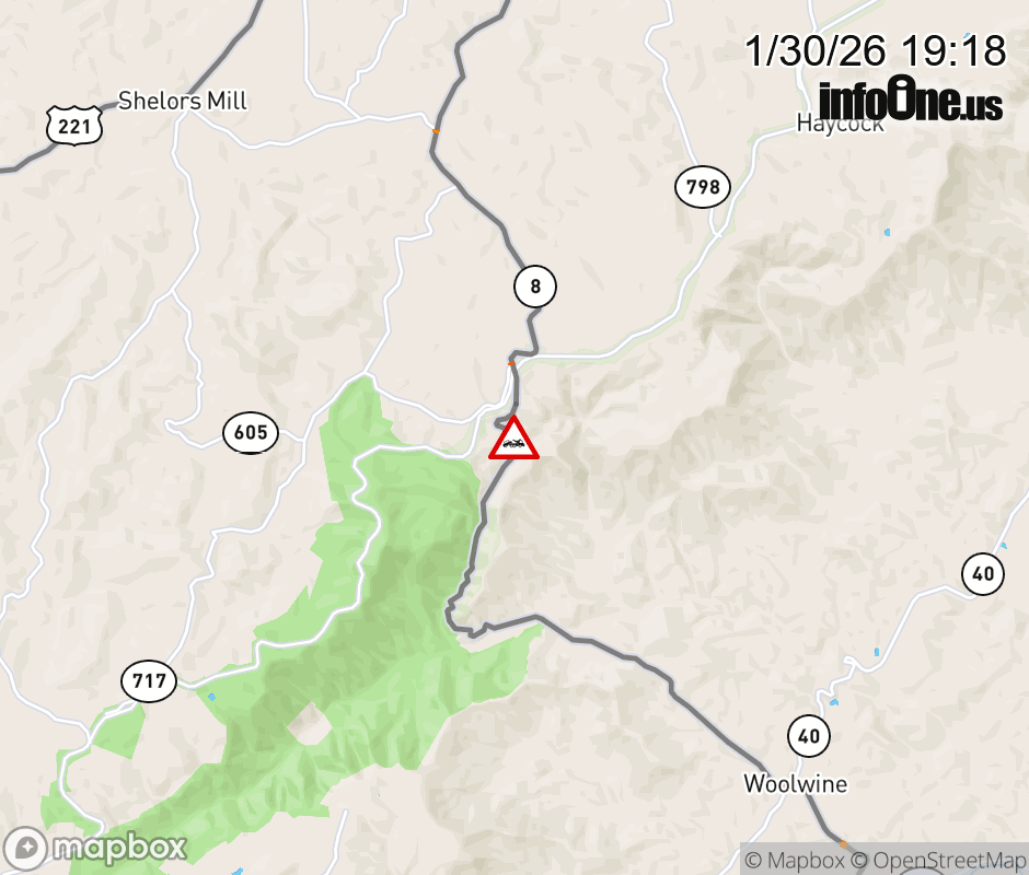 On VA-8 in the County of Patrick, in the vicinity of County/City/Town Line: PATRICK CL/FLOYD CL, motorists can expect delays due to a disabled tractor trailer. All north lanes are closed. ![]() |