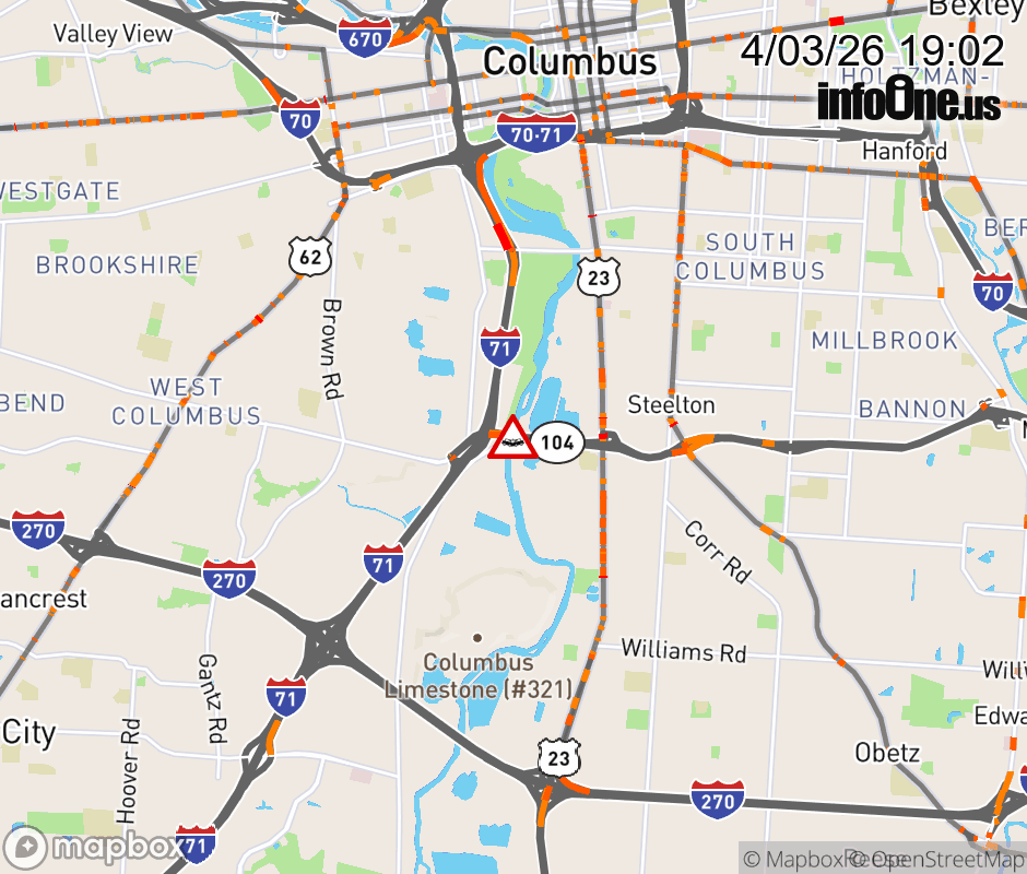 The right shoulder is blocked on SR-104 West beyond Haul Rd, due to a crash. Updated: Fri 4/3/26 7:02 PM EDT ![]() Updated: Fri 4/3/26 7:02 PM EDT |