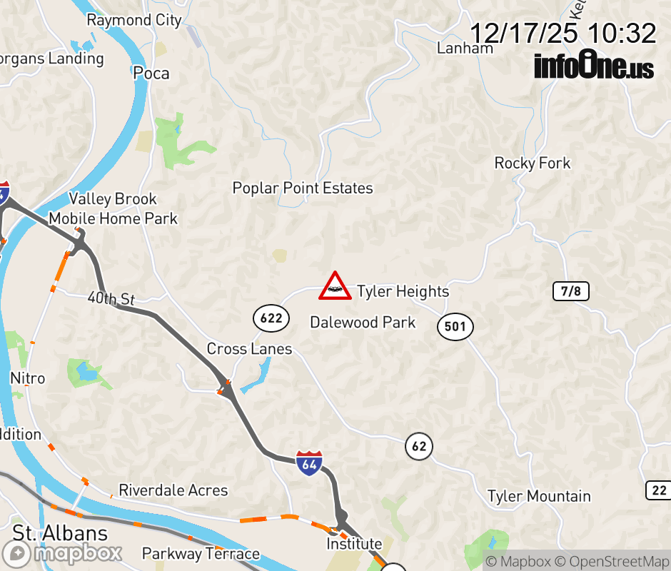 Vehicle Crash on WV-622 (5306 Big Tyler Rd). ![]() |