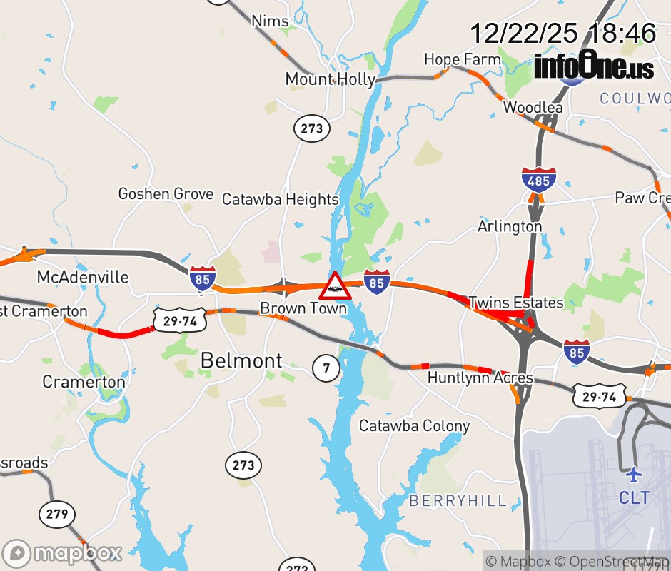 The right lane is closed past Exit 27 (NC 273). ![]() |