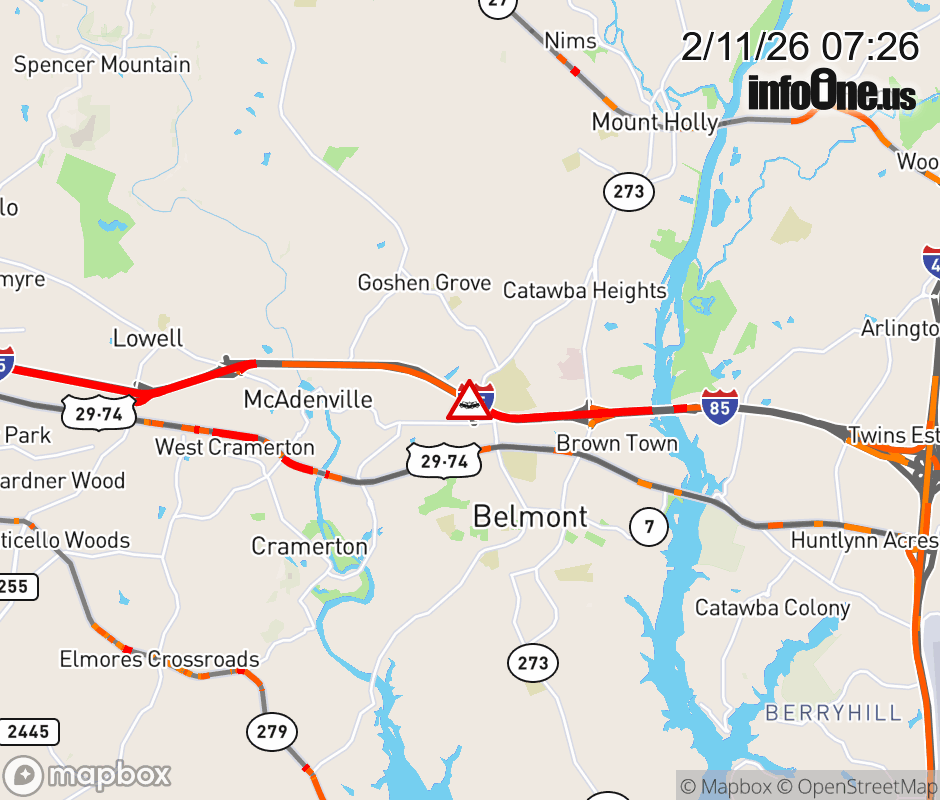 The left lane is closed at Exit 26 (Belmont -My Holly Rd). ![]() |