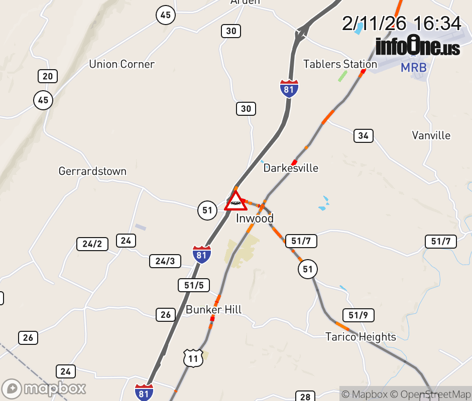 Vehicle Crash on WV-51 (4700 BLK of Gerrardstown Rd) in Inwood. ![]() |
