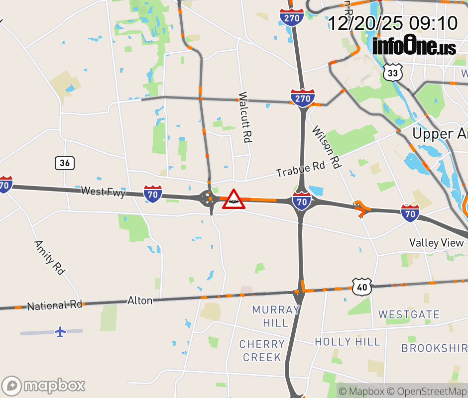 The left lane is blocked on I-70 West beyond I-270 (West Side), due to a crash. Updated: Sat 12/20/25 9:10 AM EST ![]() Updated: Sat 12/20/25 9:10 AM EST |