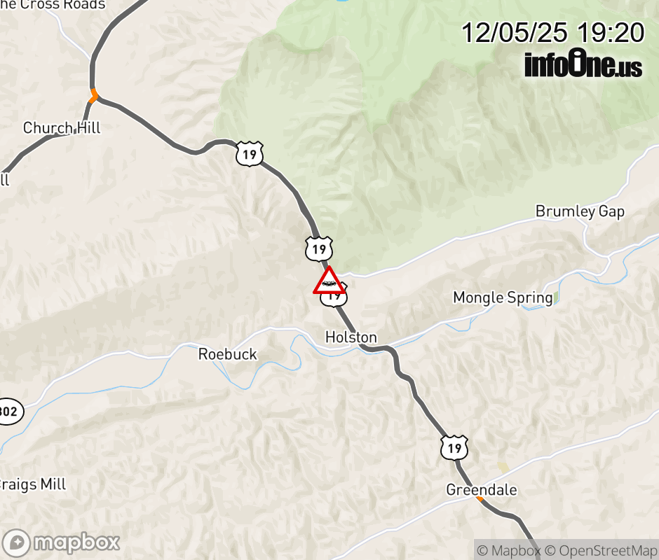On US-19 South in the County of Washington, in the vicinity of Clinchside Trl; Porterfield Hwy; Rt. 689E/W (Washington County), motorists can expect delays due to a vehicle crash. Lane closures exist. ![]() |