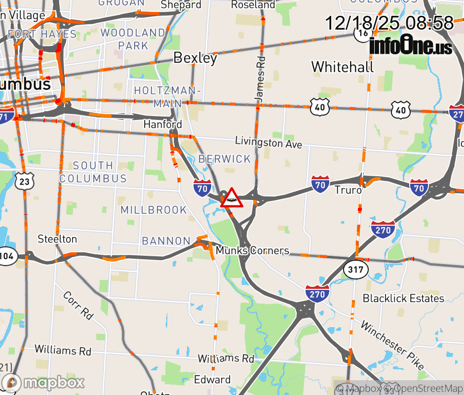 The right shoulder is blocked on I-70 West beyond US-33, due to a crash. ![]() |