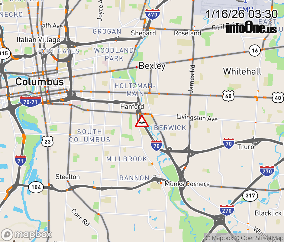 The right lane is blocked on I-70 West at US-33/Livingston Ave, due to a crash. ![]() |