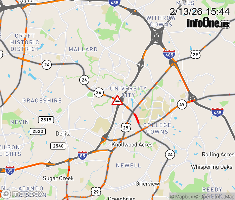 The two left lanes are closed on W.T. Harris Blvd. at I-85. Updated: Fri 2/13/26 3:44 PM EST ![]() Updated: Fri 2/13/26 3:44 PM EST |