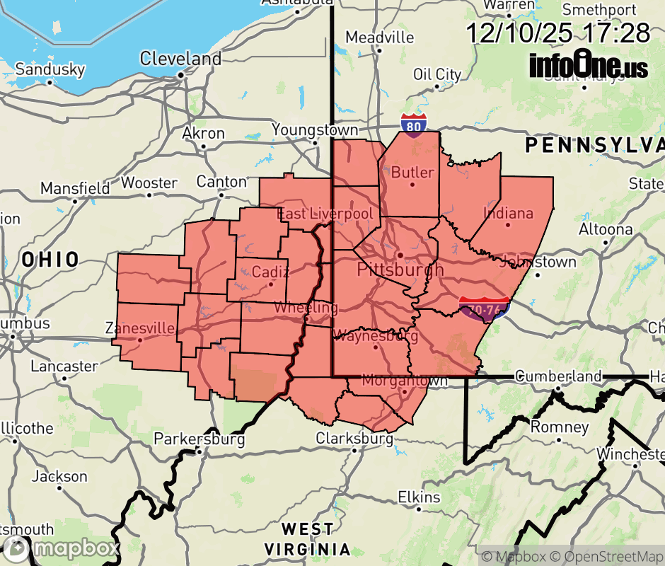 Canceled 12/11/25 9:00 AM Special Weather Statement issued December 10 at 5:26PM EST by NWS Pittsburgh PA As a cold front crosses the region, temperatures are expected to fall to or below freezing by late evening, and then into the lower to mid 20s by sunrise. Any lingering water on untreated roads is likely to freeze, potentially creating slick spots. Also, rain showers will change to snow showers tonight. Accumulations should mostly remain an inch or less, but any snow accumulation on roads could add to potential driving hazards into the morning commute. Motorists should use caution on the roads tonight and through Thursday morning. Allow for a little extra time to reach your destination. If you encounter slick roads, slow down and increase the distance between your vehicle and those that surround yours. ![]() |