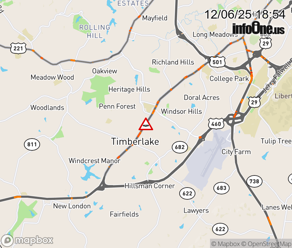 On BUS US-460 East in the County of Campbell, in the vicinity of Rt. 828E/W (Campbell County), motorists can expect delays due to a vehicle crash. Lane closures exist. ![]() |