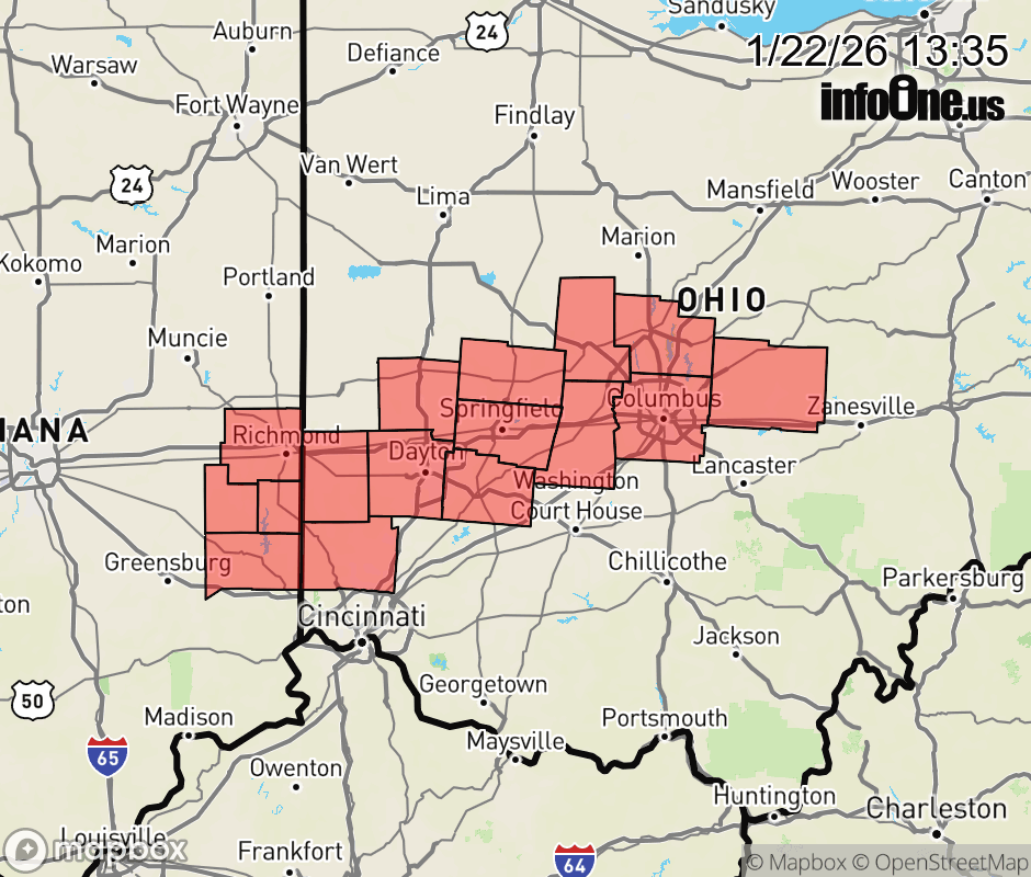 Canceled 1/23/26 1:28 AM Winter Storm Watch issued January 22 at 1:34PM EST until January 26 at 1:00AM EST by NWS Wilmington OH * WHAT... Heavy snow possible. Total snow accumulations between 5 and 9 inches possible. * WHERE... Portions of east central and southeast Indiana and central, southwest, and west central Ohio. * WHEN... From Saturday morning through late Sunday night. * IMPACTS... Travel could be very difficult. ![]() |