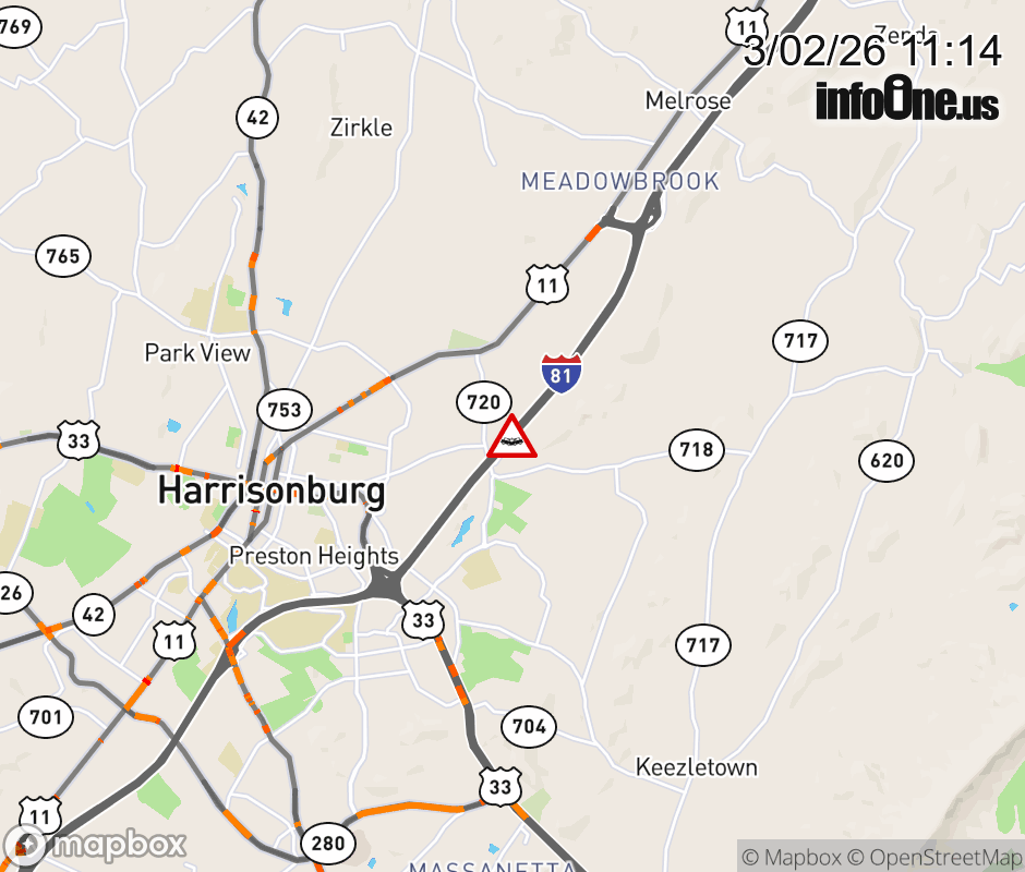 On I-81 at mile marker 249.1 in the County of Rockingham, motorists can expect delays due to a vehicle crash. The north right lane and right shoulder are closed. Updated: Mon 3/2/26 11:14 AM EST ![]() Updated: Mon 3/2/26 11:14 AM EST |