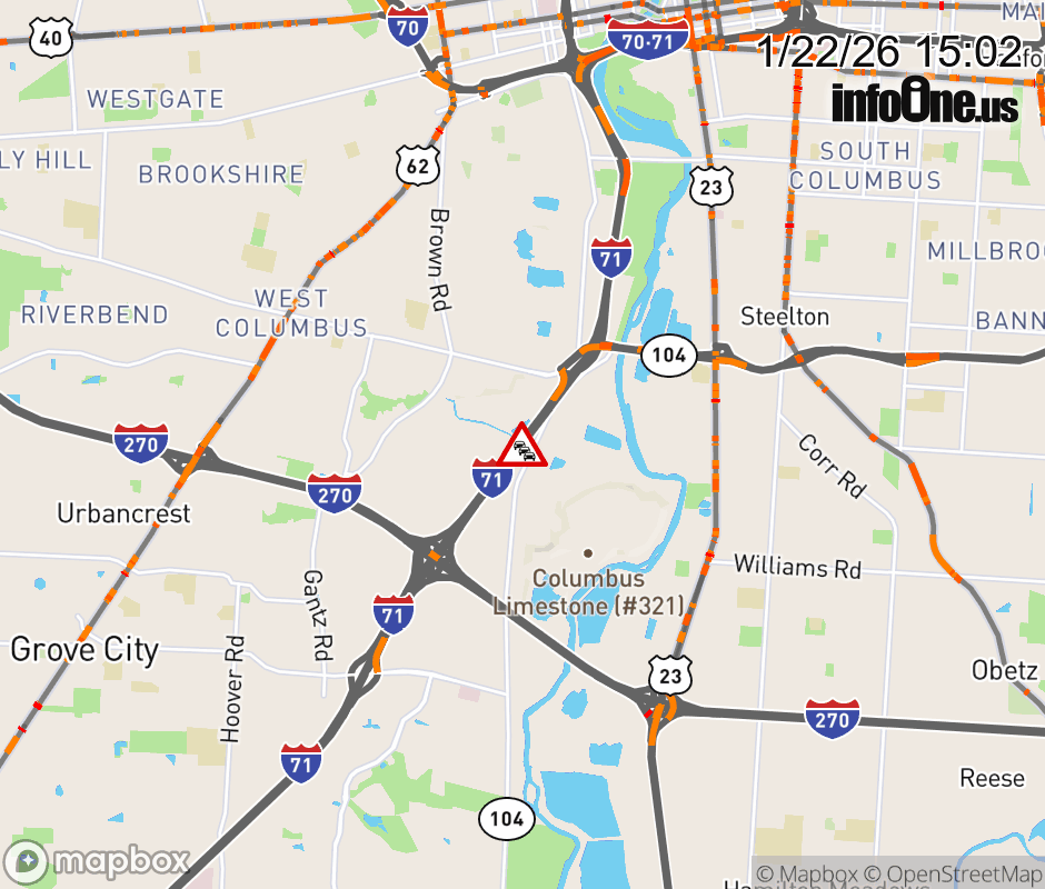 The 2 right lanes are blocked on I-71 North beyond I-270, due to debris on roadway. ![]() |