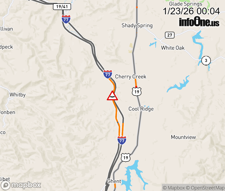 Canceled 1/23/26 1:04 AM Location: I-77 at MM 32.5, WV Accident.
