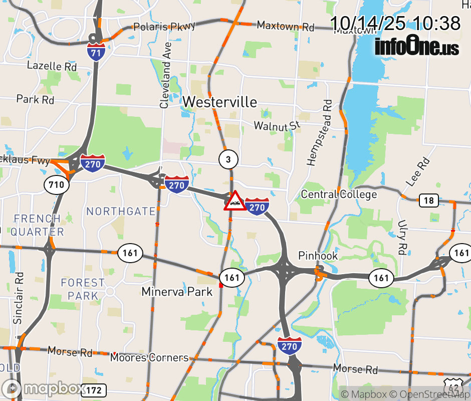 The right shoulder is blocked on I-270 North beyond SR-3/Westerville Pike, due to a disabled vehicle. ![]() |
