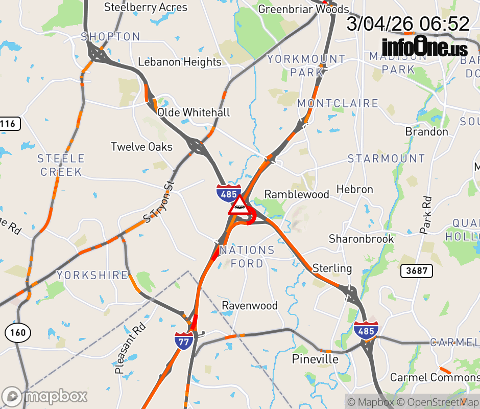 The right shoulder is closed after Exit 67 (I-77.). Updated: Wed 3/4/26 6:52 AM EST ![]() Updated: Wed 3/4/26 6:52 AM EST |
