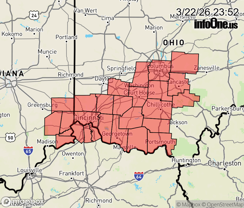 Canceled 3/23/26 12:00 AM Severe Thunderstorm Watch issued March 22 at 11:50PM EDT until March 23 at 12:00AM EDT by NWS Wilmington OH THE NATIONAL WEATHER SERVICE WILL ALLOW SEVERE THUNDERSTORM WATCH 73 TO EXPIRE AT MIDNIGHT EDT TONIGHT FOR THE FOLLOWING AREAS IN INDIANA THIS ALLOWS TO EXPIRE 5 COUNTIES IN SOUTHEAST INDIANA DEARBORN FRANKLIN OHIO RIPLEY SWITZERLAND IN KENTUCKY THIS ALLOWS TO EXPIRE 3 COUNTIES IN NORTHERN KENTUCKY BOONE CAMPBELL KENTON IN OHIO THIS ALLOWS TO EXPIRE 19 COUNTIES IN CENTRAL OHIO FAIRFIELD FAYETTE FRANKLIN HOCKING LICKING MADISON PICKAWAY IN SOUTH CENTRAL OHIO ADAMS HIGHLAND PIKE ROSS SCIOTO IN SOUTHWEST OHIO BROWN BUTLER CLERMONT CLINTON HAMILTON WARREN IN WEST CENTRAL OHIO GREENE THIS INCLUDES THE CITIES OF ABERDEEN, ALEXANDRIA, AURORA, BATESVILLE, BEAVERCREEK, BELLEVUE, BLANCHESTER, BRIGHT, BROOKVILLE, BURLINGTON, CHILLICOTHE, CIRCLEVILLE, COVINGTON, DAY HEIGHTS, DAYTON, DILLSBORO, DOWNTOWN CINCINNATI, DOWNTOWN COLUMBUS, ERLANGER, FAIRBORN, FAIRFIELD, FLORENCE, FORT THOMAS, FRANKLIN, GEORGETOWN, GREENDALE, GREENFIELD, HAMILTON, HIDDEN VALLEY, HIGHLAND HEIGHTS, HILLSBORO, INDEPENDENCE, LANCASTER, LANDEN, LAWRENCEBURG, LEBANON, LOGAN, LONDON, MANCHESTER, MASON, MIDDLETOWN, MILAN, MILFORD, MOUNT CARMEL, MOUNT ORAB, MOUNT REPOSE, MULBERRY, NEWARK, NEWPORT, OAKBROOK, OSGOOD, OXFORD, PEEBLES, PICKERINGTON, PIKE LAKE, PIKETON, PLAIN CITY, PORTSMOUTH, RIPLEY, RISING SUN, SEAMAN, SPRINGBORO, SUMMERSIDE, VERSAILLES, VEVAY, WASHINGTON COURT HOUSE, WAVERLY, WEST JEFFERSON, WEST UNION, WHEELERSBURG, WILMINGTON, WINCHESTER, WITHAMSVILLE, AND XENIA. ![]() |
