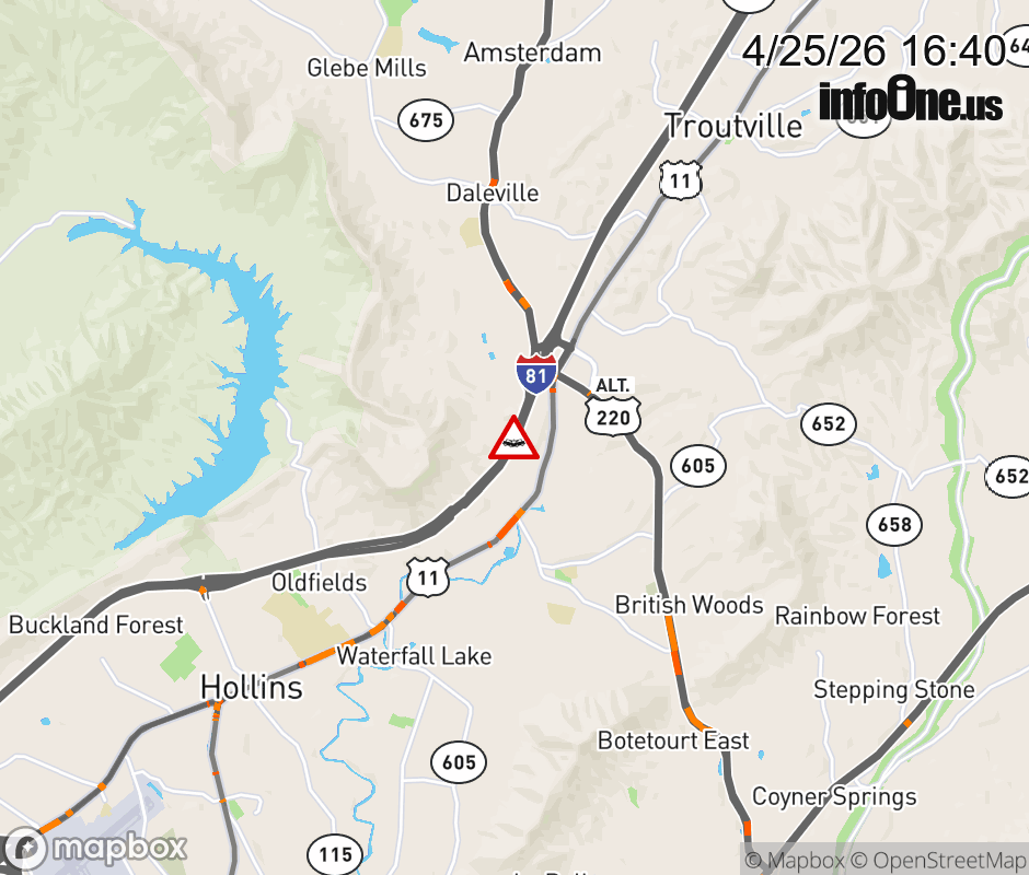 On I-81 at mile marker 149.6 in the County of Botetourt, motorists can expect delays due to a vehicle crash. The south right shoulder is closed. ![]() |