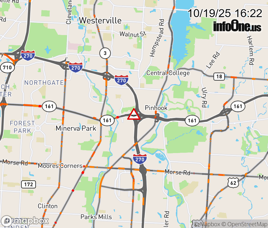 The right lane is blocked on Ramp I-270 South to SR-161 East, due to a crash. ![]() |