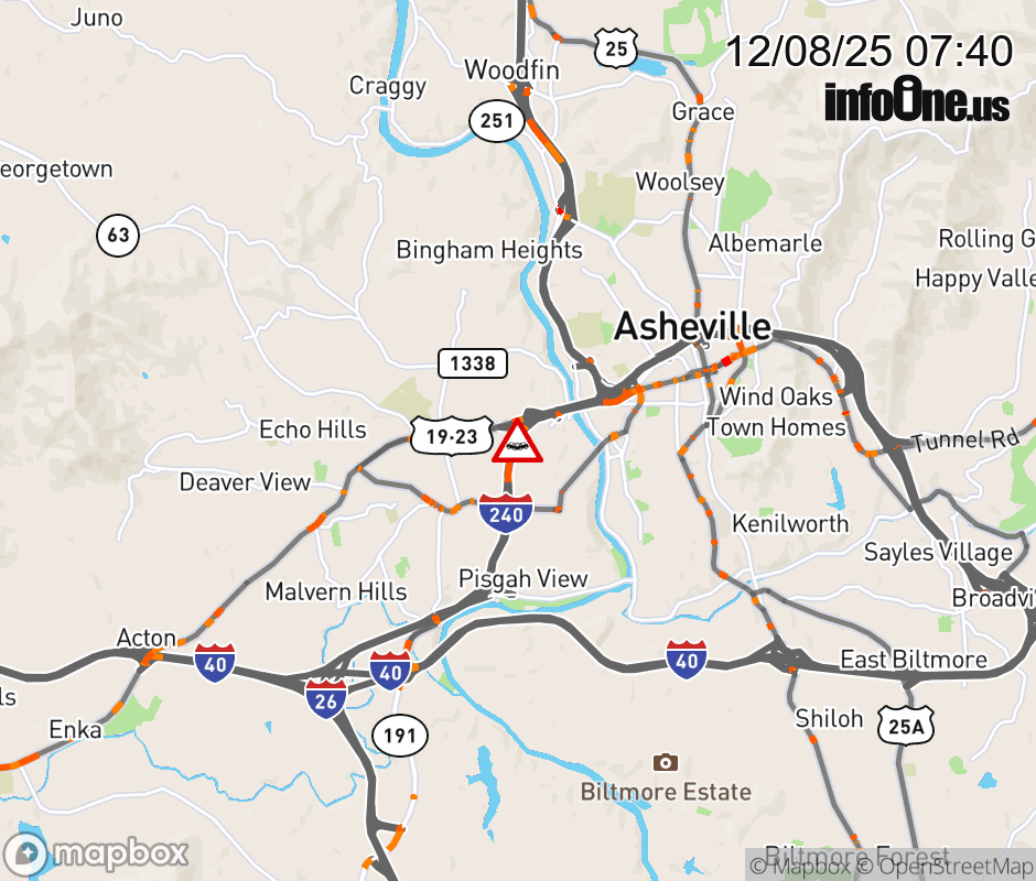 The ramp lane is closed at Exit 3A, US 74 Alternate (Patton Avenue). Updated: Mon 12/8/25 7:40 AM EST ![]() Updated: Mon 12/8/25 7:40 AM EST |