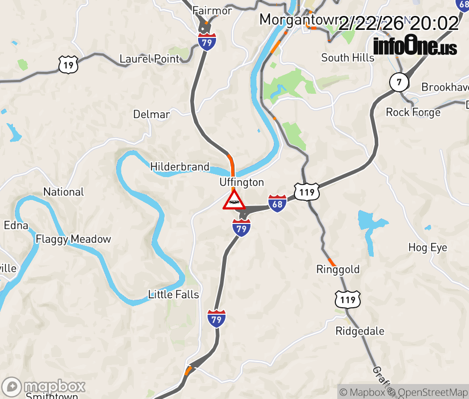 Vehicle Crash on I-79S at Mile Marker 149.0. The southbound right lane is closed. Updated: Sun 2/22/26 8:02 PM EST ![]() Updated: Sun 2/22/26 8:02 PM EST |