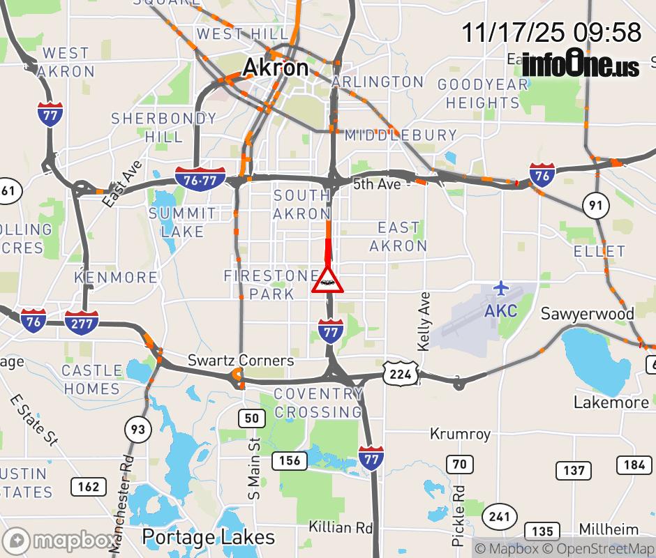 The 2 right lanes are blocked on I-77 South at SR-764/Wilbeth Rd, due to a crash. Updated: Mon 11/17/25 9:58 AM EST ![]() Updated: Mon 11/17/25 9:58 AM EST |