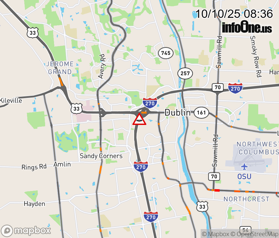 The right lane is blocked on I-270 North at US-33/SR-161 East, due to a crash. ![]() |