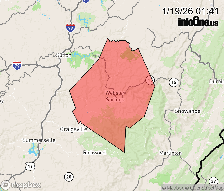 Canceled 1/19/26 10:45 AM Extreme Cold Warning issued January 19 at 1:40AM EST until January 20 at 2:00PM EST by NWS Charleston WV * WHAT... Dangerously cold wind chills as low as 20 below expected. * WHERE... Southeast Webster County. * WHEN... From 6 PM this evening to 2 PM EST Tuesday. * IMPACTS... The cold wind chills as low as 20 below zero could result in hypothermia or frostbite if precautions are not taken. ![]() |