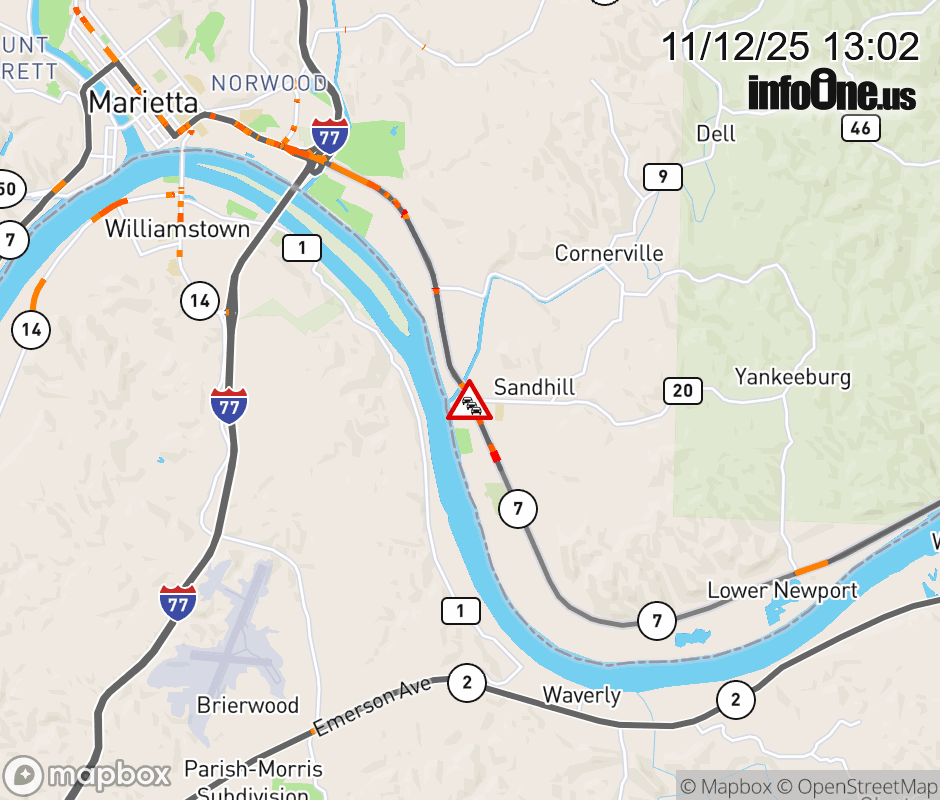 The right lane is closed on SR-7 North at Brown Rd (Washington County), due to a fire. Updated: Wed 11/12/25 1:02 PM EST ![]() Updated: Wed 11/12/25 1:02 PM EST |
