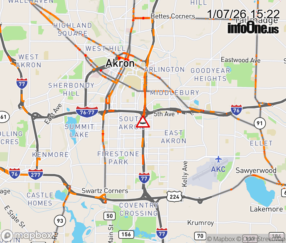 The 2 left lanes are blocked on I-77 South at I-76/SR-8, due to a crash. ![]() |