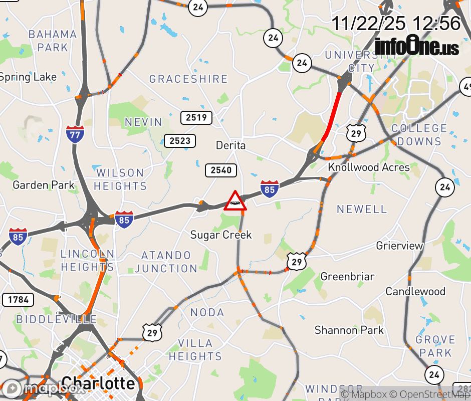 The right shoulder is closed near University City Blvd. Updated: Sat 11/22/25 12:56 PM EST ![]() Updated: Sat 11/22/25 12:56 PM EST |